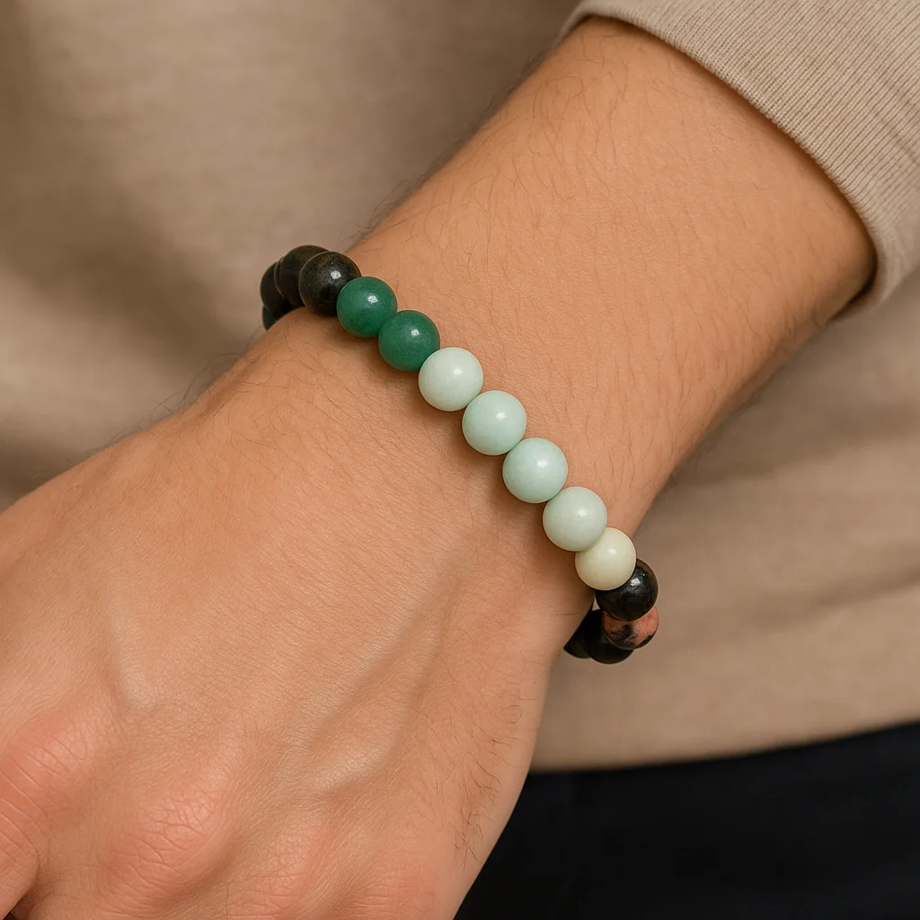 ♉ Taurus (वृषभ) Zodiac Crystal Bracelet Stability · Growth · Abundance · Inner Peace Created especially for the grounded, loyal, and nurturing Taurus (वृषभ राशि), this Zodiac Crystal Bracelet supports emotional stability, abundance, patience, and inner harmony. Ruled by Venus, the planet of love, beauty, and prosperity, Taurus energy thrives on balance, comfort, and consistency. The carefully chosen crystals in this bracelet align with Taurus’ earth element, helping to stabilize emotions, attract abundance, and promote calm confidence. 🌟 Crystal Composition & Meanings 💚 Green Aventurine – Growth & Prosperity Known as the Stone of Opportunity, Green Aventurine attracts abundance, success, and emotional balance. It supports Taurus in growth, patience, and steady progress. 🌿 Amazonite – Calm & Emotional Balance Amazonite soothes the nervous system, reduces stress, and encourages gentle communication. It helps Taurus release stubborn emotional blocks while maintaining inner peace. 🌸 Rose Quartz – Love & Self-Worth The stone of unconditional love, Rose Quartz enhances self-love, emotional healing, and harmonious relationships—important for Venus-ruled Taurus. 🐅 Tiger’s Eye – Confidence & Grounding Tiger’s Eye strengthens inner confidence and decision-making. It helps Taurus stay grounded while stepping forward with courage and stability. ⚫ Black Onyx – Protection & Strength A powerful grounding stone that absorbs negativity and strengthens emotional resilience. It keeps Taurus protected and energetically balanced. ✨ Benefits (Energy-Based) Encourages emotional stability and calmness Attracts abundance, growth, and prosperity Strengthens patience, confidence, and grounding Enhances love, self-worth, and harmony Protects against negativity and emotional drain Aligns with Venus-ruled Taurus energy (Crystals provide spiritual support and do not replace medical or professional advice.)