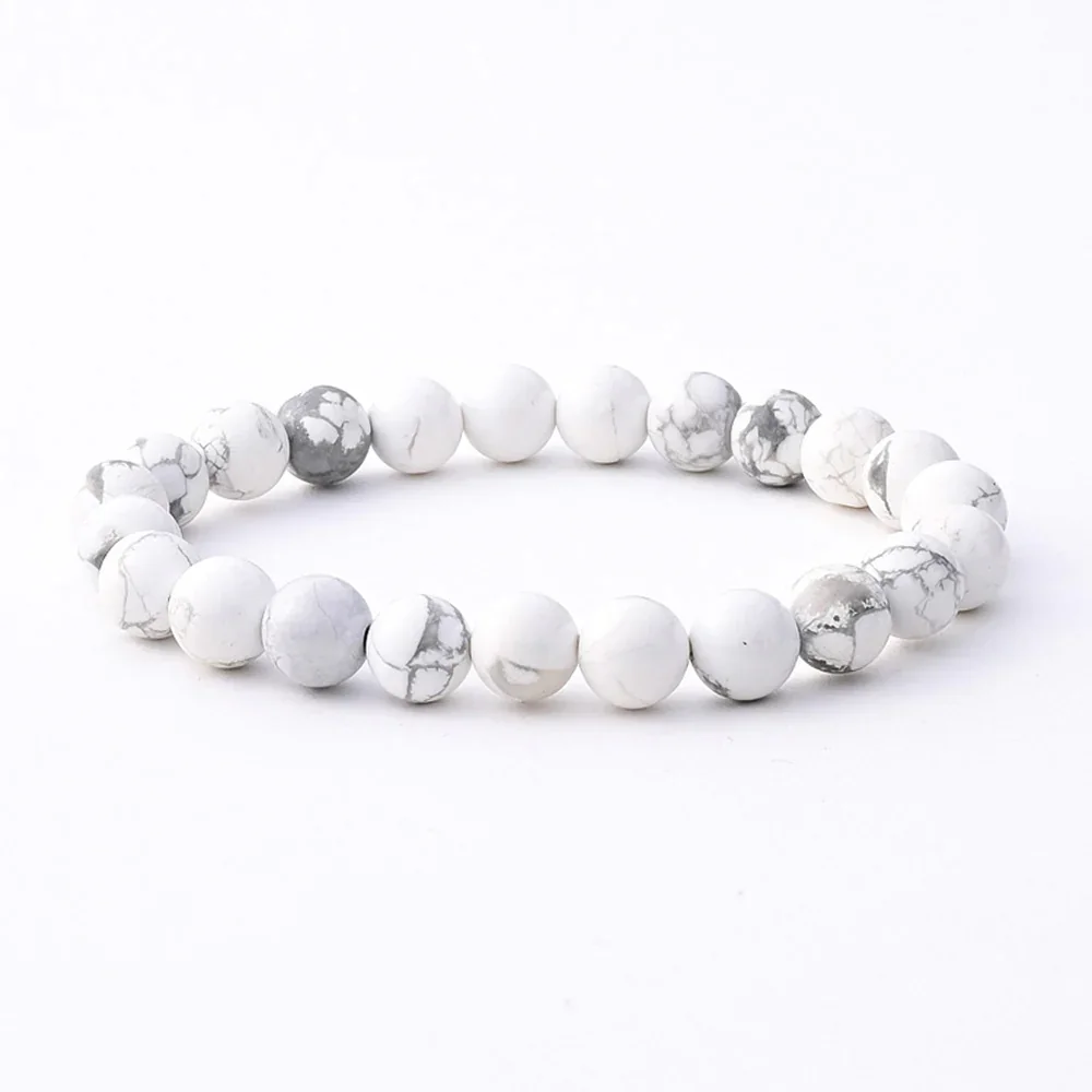 Soothe your mind and spirit with the Howlite Bracelet, a calming crystal accessory known for reducing stress, anxiety, and emotional turbulence. With its gentle white color and natural gray veins, Howlite symbolizes peace, patience, and serenity.